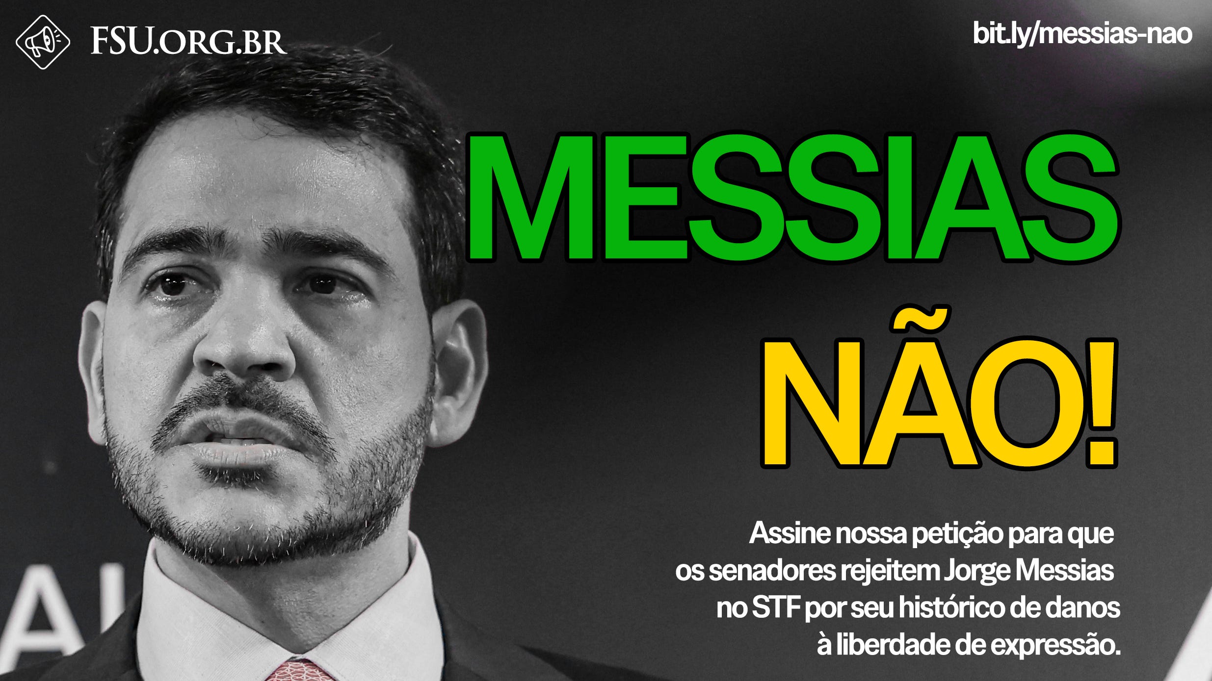 A União pela Liberdade de Expressão (FSU-BR) conclama os cidadãos brasileiros a subscrever este abaixo-assinado para que o Senado Federal rejeite a indicação do Advogado-Geral da União, Jorge Messias, ao cargo de ministro do Supremo Tribunal Federal.